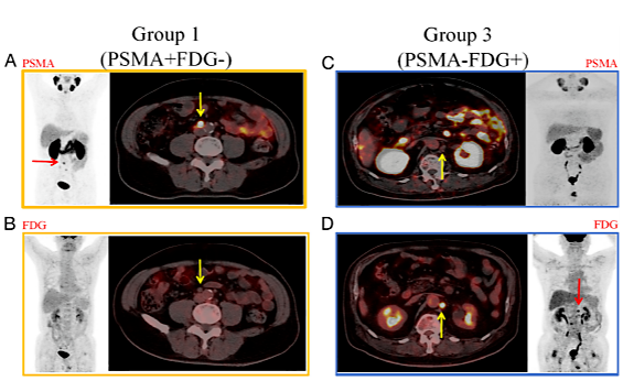 研究結果發現,Group 1(PSMA+FDG-)在BCR、mCSPC及mCRPC各階段的比例逐漸降低,而Group 2和Group 3(含FDG+)的比例則逐步增加,差異具有統計學意義(p = 0.001)。