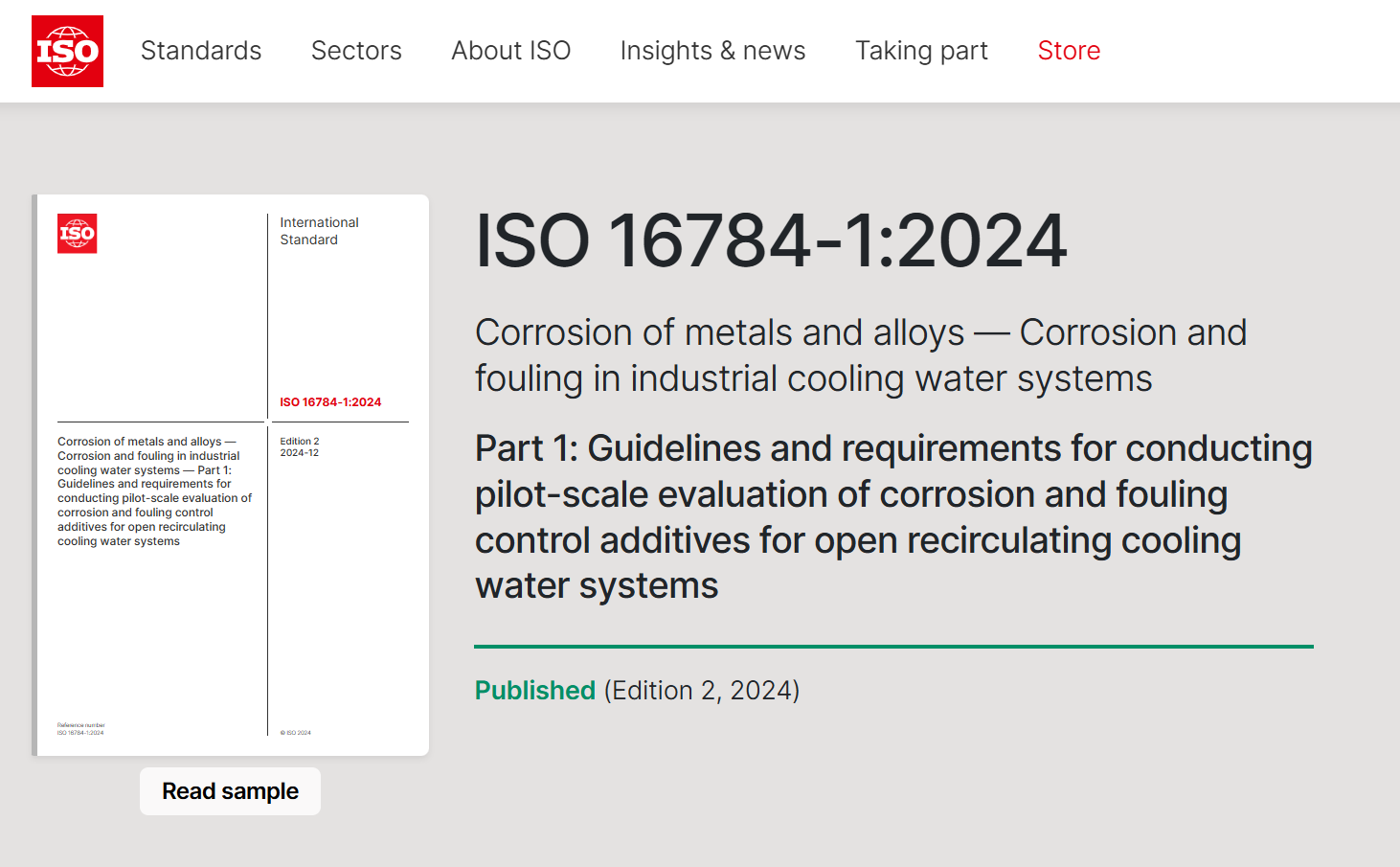 《工業(yè)冷卻水系統(tǒng)的腐蝕和污垢控制——第1部分:開式循環(huán)冷卻水系統(tǒng)腐蝕和結(jié)垢添加劑的中試評(píng)估指南》(ISO 16784-1:2024)