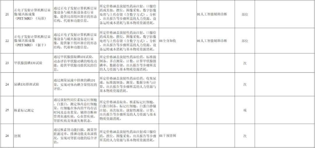 2024年11月25日,為貫徹落實《深化醫療服務價格改革試點方案》,推進全國醫療服務價格項目規范編制工作,國家醫保局發布《放射檢查類醫療服務價格項目立項指南(試行)》,參考2023年版醫療服務項目技術規范,將現行放射檢查類價格項目映射整合為26項,其中包括涉及核醫學13項。這引起了廣泛的關注。在相關通知中,國家醫保局明確要求各省醫保局參考該指南,結合實際做好對接落實,制定全省統一的價格基準,由具有價格管理權限的統籌地區對照全省價格基準,上下浮動確定實際執行的價格水平。