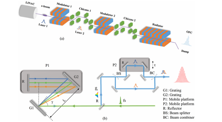本研究提出了一種利用啁啾拍頻激光在EEHG-FEL方案中生成高功率可調諧X射線頻率梳的理論方法。該方法克服了傳統技術的局限性,驗證了在X射線光譜中實現頻率梳的可行性。可調諧XFC的實現將顯著提高X射線光譜學的能力,促進對物質微觀結構的深入研究。高功率XFC還可以用于共振非彈性X射線散射(Resonant inelastic X-ray scattering, RIXS)和太比特級相干光通信的研究領域,探索新物質狀態,研究基本相互作用。此外,研究團隊正在準備在SXFEL設施中對該方法進行實驗驗證。啁啾拍頻激光系統已經搭建并測試完畢,預計這種方法將顯著增強SXFEL服務于光譜學實驗能力。