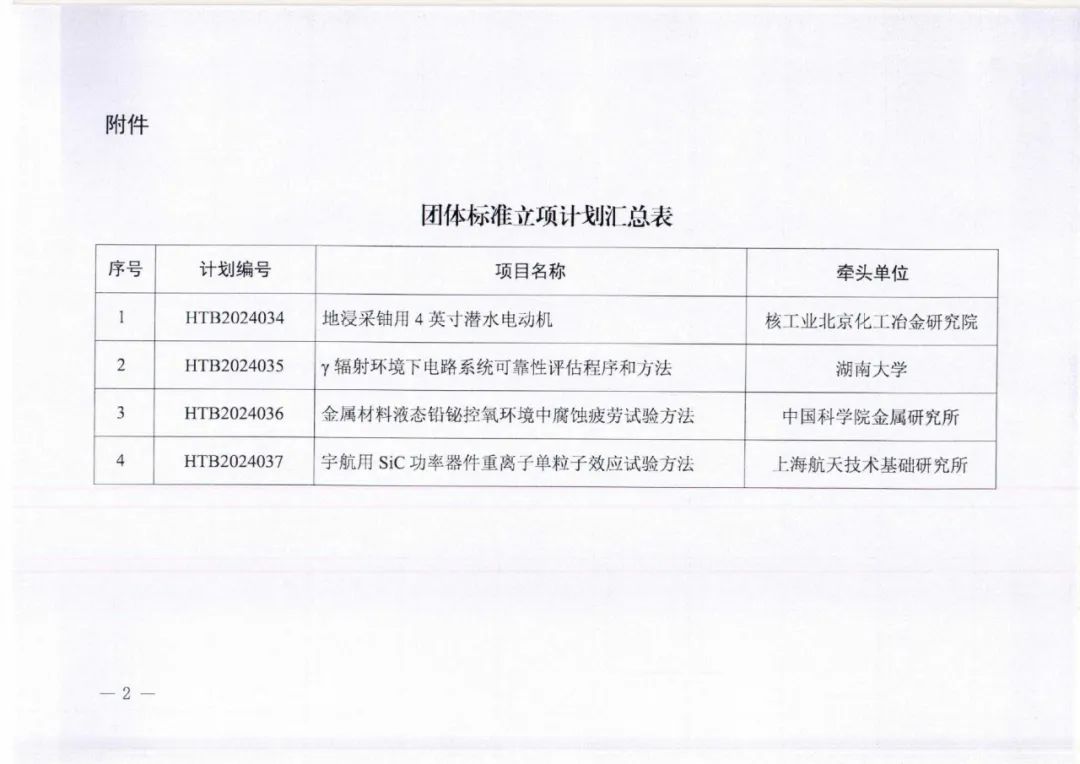 12月27日,中國核學會發布《關于下達2024年度第三批中國核學會團體標準立項計劃的通知》。通知顯示,根據《中國核學會標準化管理辦法》,經中國核學會標準工作委員會審議,決定批準《地浸采鈾用4英寸潛水電動機》等4個團體標準制定項目立項項目周期為一年。