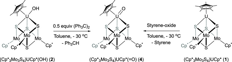 圖4.(Cp*3Mo3S4)Cp*U(=O) (4)的合成。