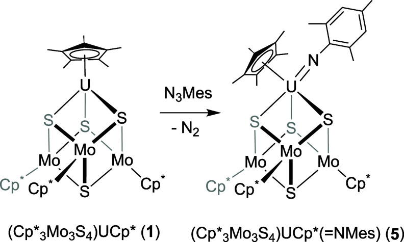 圖5.(Cp?Mo?S?)CpU (=NMes)(5)的合成。