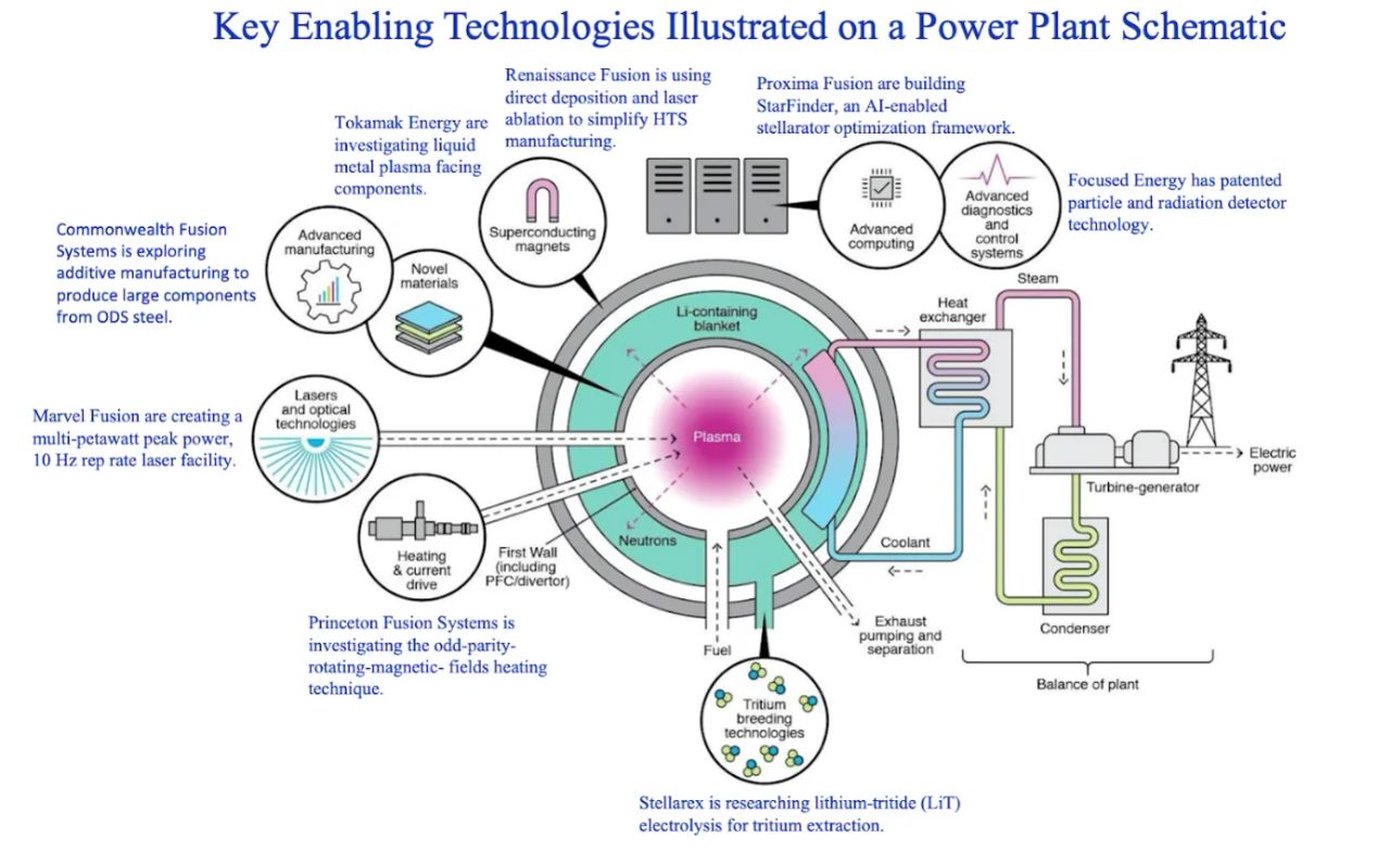 該圖說明了關(guān)鍵的使能技術(shù),用藍色突出顯示了聚變公司的一些相關(guān)貢獻