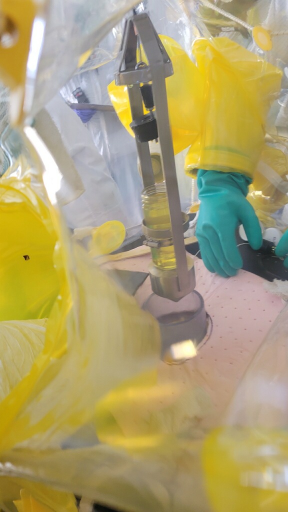 漢福德場(chǎng)址的工人從一個(gè)大型地下儲(chǔ)罐中取出廢物樣本進(jìn)行檢測(cè),以確保其符合今年晚些時(shí)候送往廢物處理和固定化廠的標(biāo)準(zhǔn)