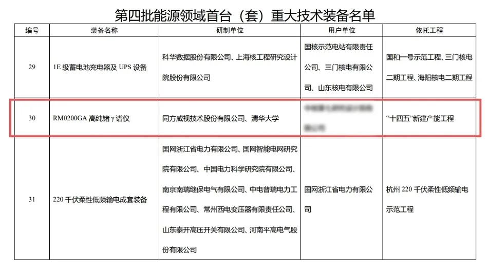 1月7日,國家能源局正式公布第四批能源領域首臺(套)重大技術裝備名單,同方威視RM0200GA高純鍺γ譜儀成功入選。