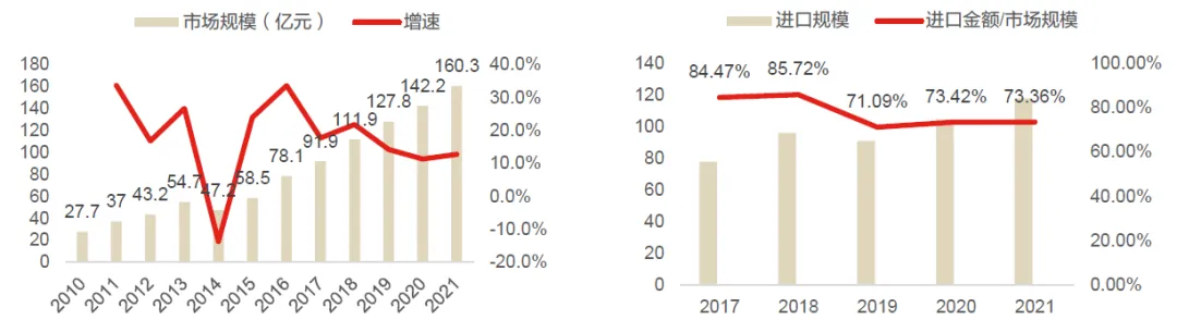 ▲國內質譜儀規模及增速、進口金額及依賴度