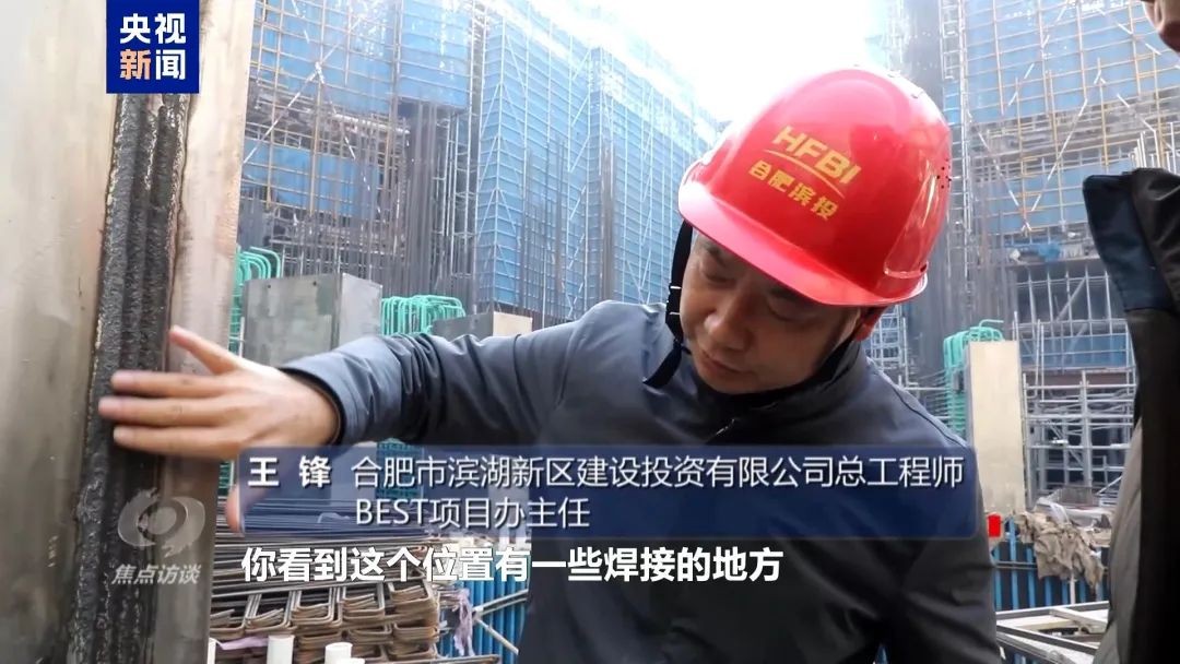 合肥市濱湖新區建設投資有限公司總工程師 BEST項目辦主任 王鋒:你看這個位置有一些焊接的地方,是在加工廠里面二次焊接的時候出現了問題。焊接的點位的磁導率不過關,這個科學問題解決不了,整個工程就要停工,所做的所有的東西就是圍繞這個來干的。