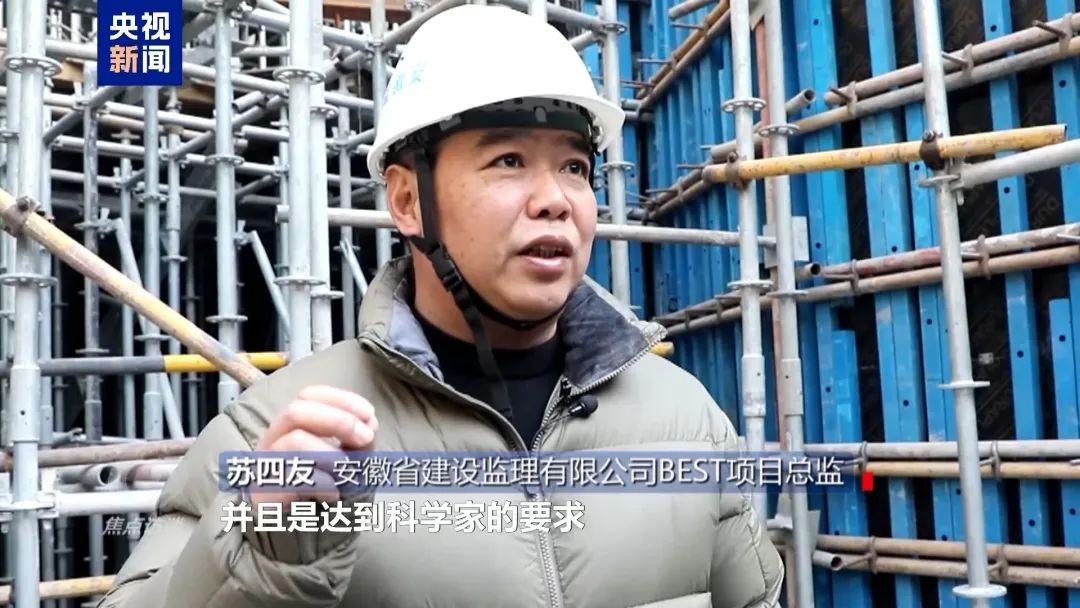 安徽省建設監理有限公司BEST項目總監 蘇四友:到目前為止,整個進度略有超前,質量是完全可控的,完全在規范范圍之內并且是達到科學家的要求。剛才講的無磁鋼柱,我們進行復測都是一次性合格。