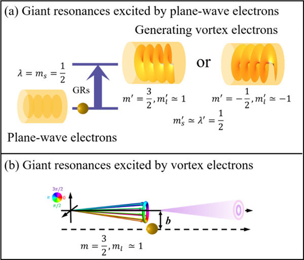 圖 平面波電子和渦旋電子激發原子核巨共振示意圖