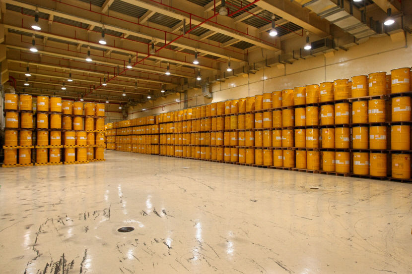 一桶桶放射性廢物被運入位于慶尚北道慶州市文武大旺面的韓國放射性廢物管理署低級和中級放射性廢物儲存設施。由韓國原子能機構提供