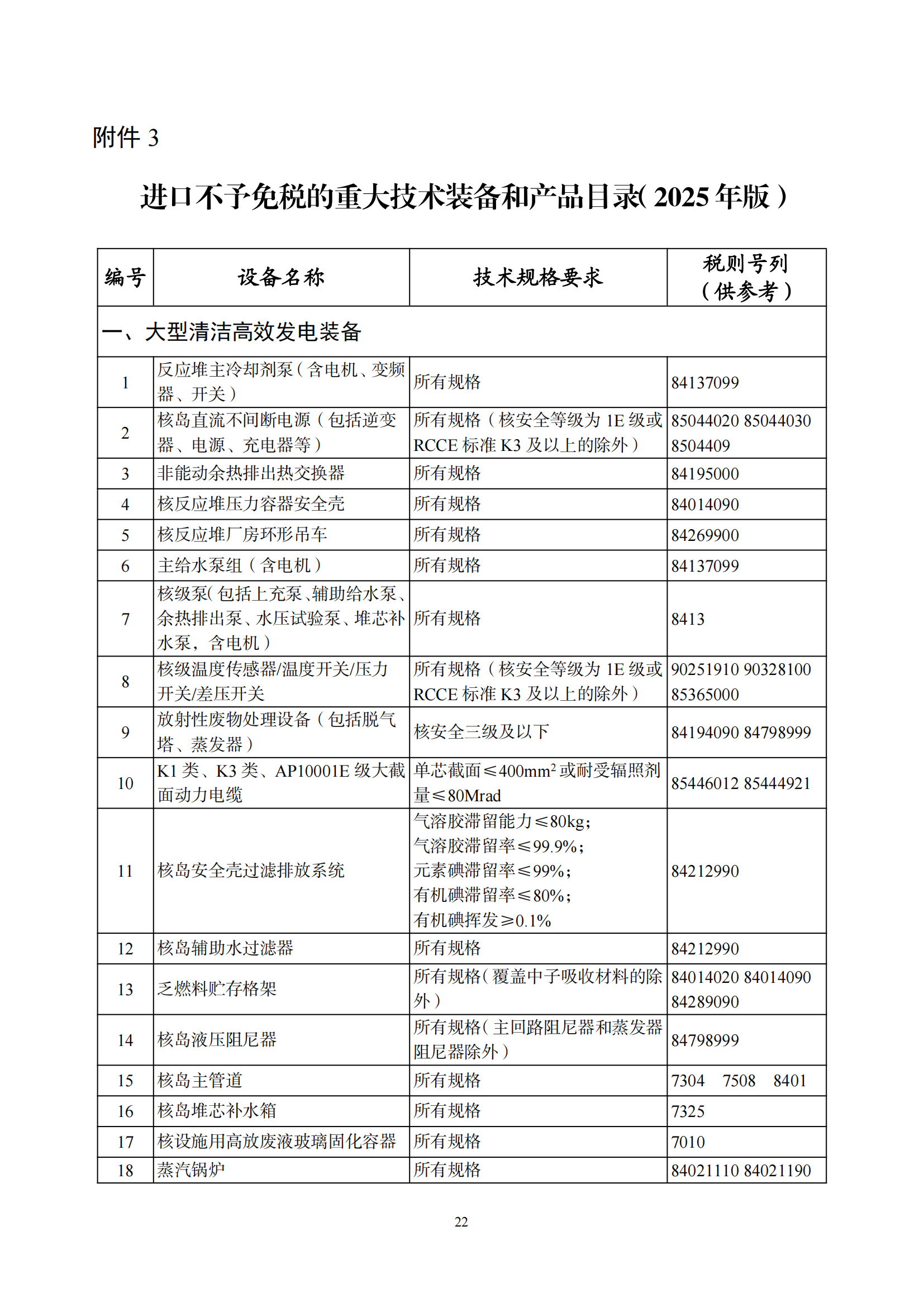 一、《國家支持發展的重大技術裝備和產品目錄(2025年版)》(附件1)、《重大技術裝備和產品進口關鍵零部件、原材料商品目錄(2025年版)》(附件2)和《進口不予免稅的重大技術裝備和產品目錄(2025年版)》(附件3)自2025年3月1日起執行。