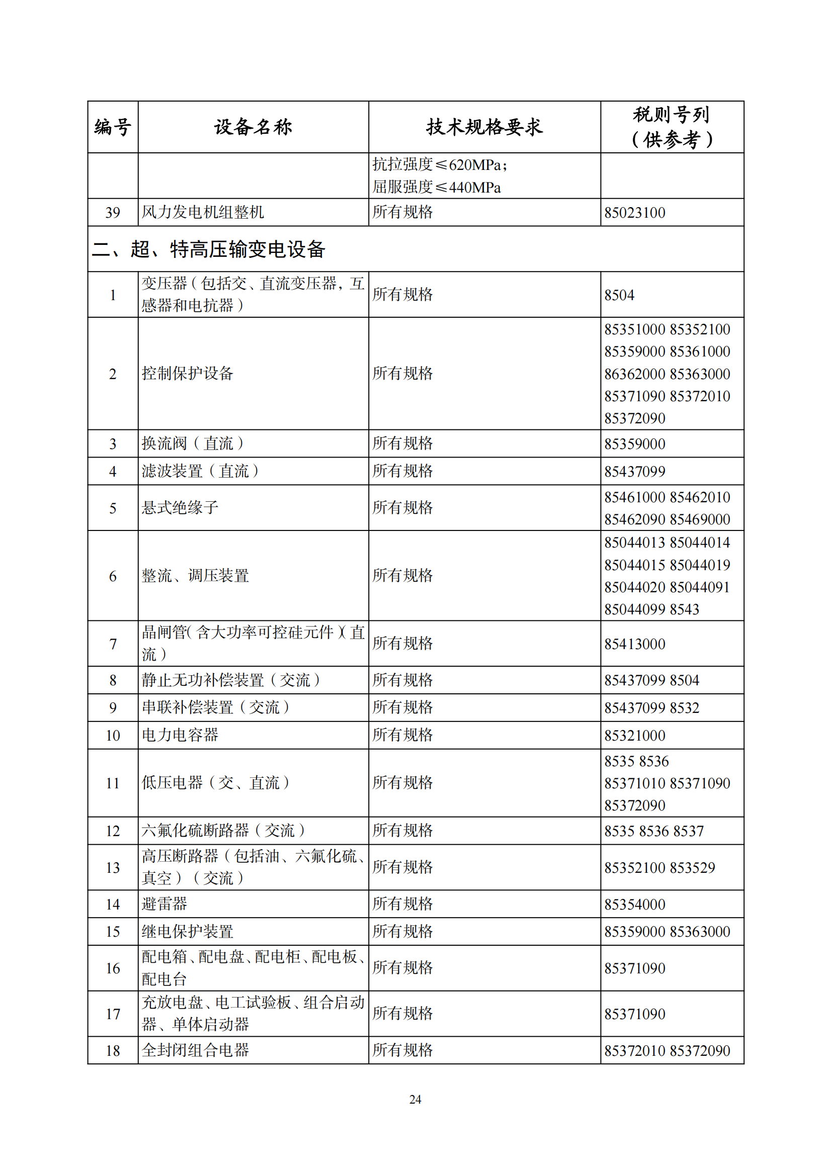 四、附件1和附件2中所列銷售業績要求僅用于確定免稅企業名單。附件2中列明執行年限的進口關鍵零部件、原材料,免稅執行期限截至該年度12月31日(含)。附件2和附件3中所列稅則號列僅供參考,具體商品范圍以設備名稱及技術規格要求為準。