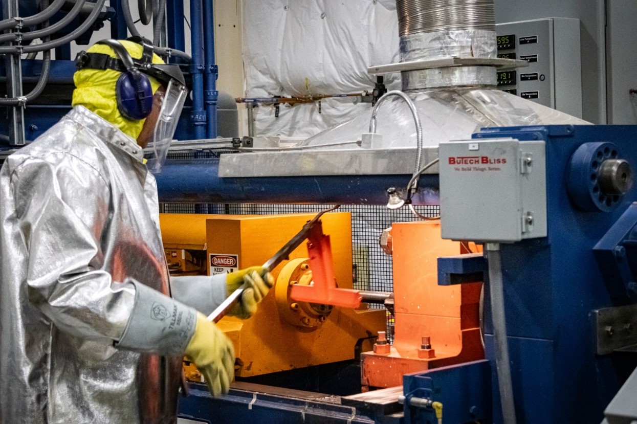據悉,該共擠壓工藝演示是在INL進行的,過程中將包裹在鋯合金包層中的金屬合金坯料通過模具壓制,成功生產出了長度約為8英尺的圓柱形棒。這一試樣的共擠代表了Lightbridge在核燃料制造技術方面的重要突破。