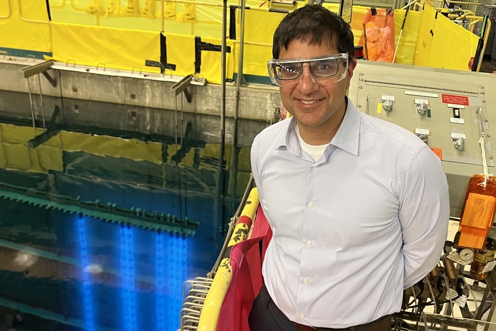 阿瓊·薩加爾 (Arjun Sahgal) 博士是桑尼布魯克健康科學(xué)中心放射腫瘤科主任,他使用 HSA 鈷通過伽瑪?shù)都夹g(shù)治療癌癥患者,最近他來到布魯斯電力公司參觀設(shè)施,親眼目睹了從 5 號(hào)機(jī)組收獲的鈷 60。鈷調(diào)節(jié)棒被屏蔽在燃料艙中,由于切倫科夫效應(yīng)而發(fā)出藍(lán)光,當(dāng)帶電粒子在水等透明介質(zhì)中傳播速度快于光速時(shí)就會(huì)發(fā)生這種現(xiàn)象。
