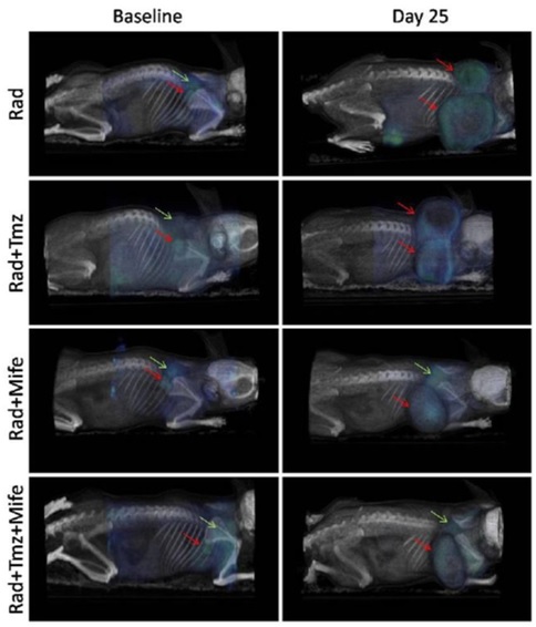 Rad加Tmz是膠質(zhì)母細(xì)胞瘤的典型治療方案,但研究發(fā)現(xiàn),使用Mife作為啟動(dòng)劑比其它療法組合更能抑制腫瘤生長(zhǎng)(圖1)。Mife的這種化學(xué)放射增敏作用的機(jī)制尚未能完全闡明,但這類研究有助于研究人員朝著改進(jìn)現(xiàn)有癌癥療法的方向邁出重要的一步。