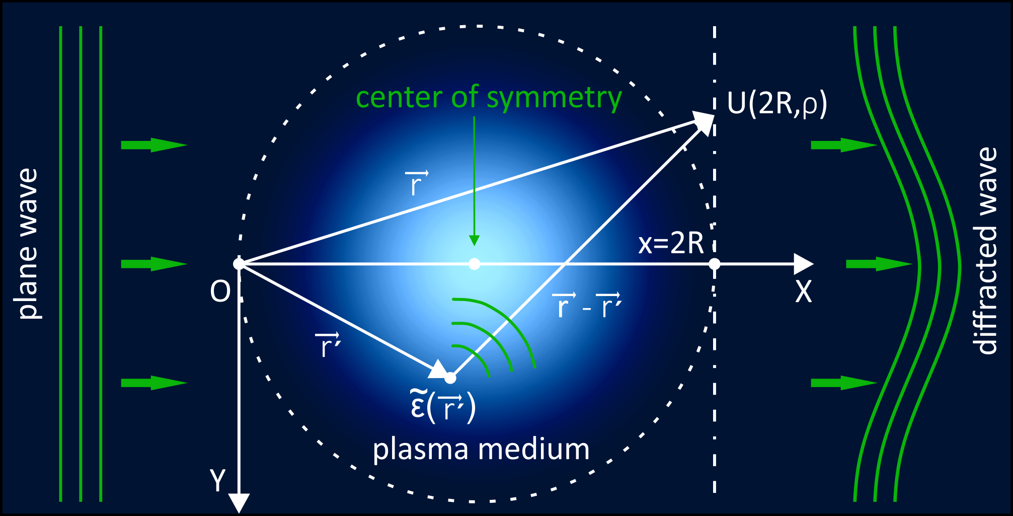 為了研究衍射效應(yīng),科學(xué)家在亥姆霍茲標(biāo)量波動方程的解基礎(chǔ)上對直接衍射問題進(jìn)行了全面的數(shù)值模擬,該方程描述了激光輻射在非均勻等離子體介質(zhì)中的傳播。
