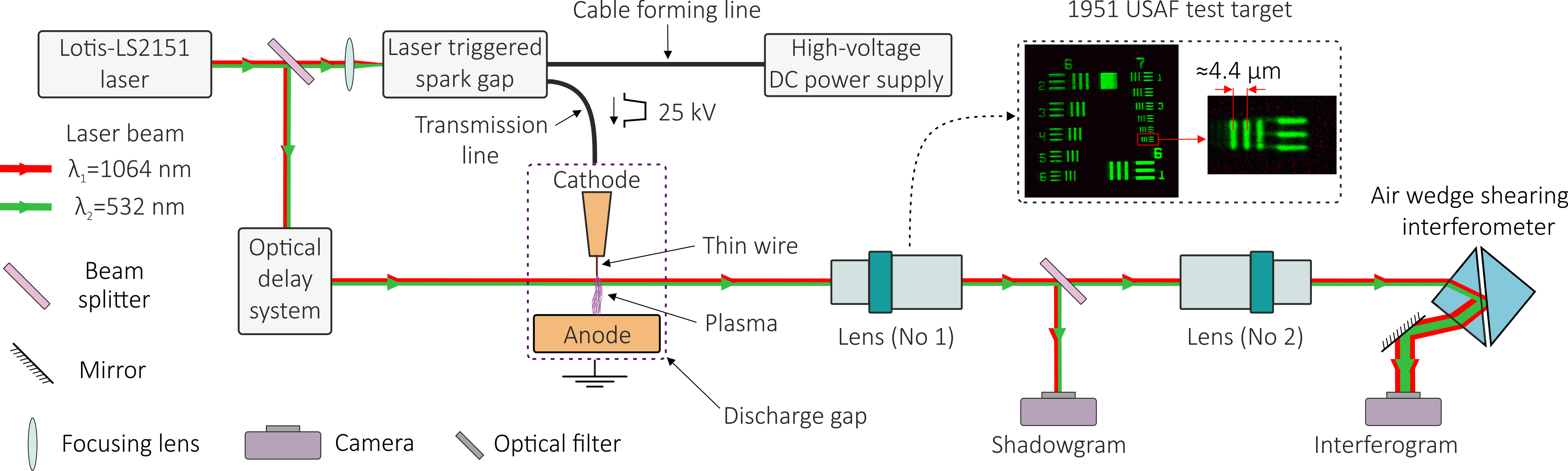 圖 4.用于可視化波長為 532 nm 和 1064 nm 的等離子體微結(jié)構(gòu)的診斷裝置示意圖。資料來源:Physical Review E。