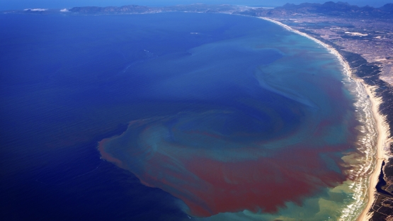 藻類生物質(zhì)的大量積累會(huì)導(dǎo)致海水局部脫氧,這可能會(huì)導(dǎo)致流動(dòng)性較弱的水生生物廣泛死亡。這種現(xiàn)象還可以通過(guò)影響呼吸直接影響人類,或者通過(guò)食用受污染的海鮮而間接影響人類。該衛(wèi)星圖像顯示出大量的沿海藻華。(照片:ESA)