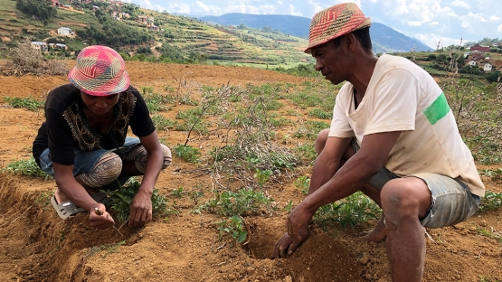 馬達加斯加的土地極其肥沃,氣候對農業非常有利,以至于這里的農民每年都能有四次收成。換句話說,每個家庭半公頃的土地相當于在更溫和的氣候下兩公頃的土地。馬達加斯加高地的農民一直在輪作以維持其地塊的營養水平,但現在他們知道,至少每年一次,他們需要種植地瓜或豆類,這些植物根系發達,不僅保留了大部分土壤到位,而且它們腐爛后,土壤中會富含碳,并為土壤提供更致密的結構,從而減緩了侵蝕。