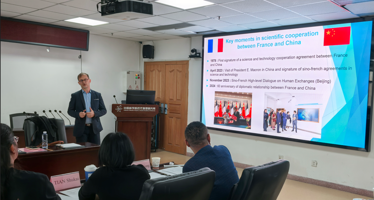 孫良亭研究員對安諾教授一行的到訪表示熱烈歡迎,從研究所戰略布局、中法合作成果、大科學裝置建設規劃等方面,系統介紹了研究所的發展概況與國際合作成效。他指出,近代物理所一直與法國的科研機構有著良好的合作,此次訪問將進一步推動雙邊科研交流,為雙方在核物理、大科學裝置及前沿科技領域的合作探索新路徑,也為未來聯合研究、人才交流與技術轉化等提供新的機會。