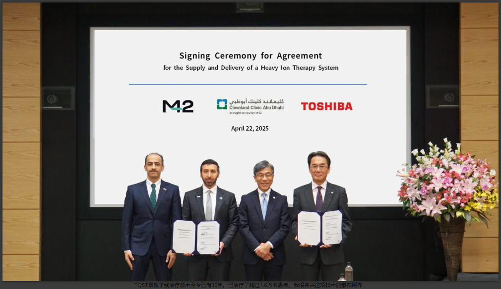 4月22日,東芝能源系統與解決方案株式會社(東芝ESS)于京濱商務中心,與阿拉伯聯合酋長國(UAE)的克利夫蘭診所阿布扎比分院(CCAD)舉行簽約儀式,東芝ESS將向阿聯酋供應首臺重離子癌癥治療裝置,這也是該設備首次在中東地區投入使用。