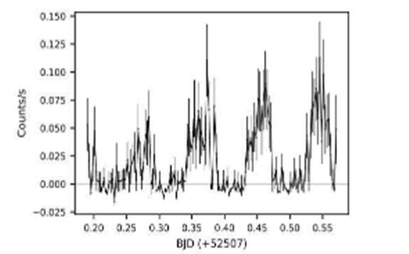 研究發現,J0005的X射線光曲線顯示出明顯的亮相和微弱相,并且亮相在一個周期至下一個周期的X射線發光度中變化很大。這是極地的典型現象,表示增生區域會旋轉進出視野。X射線光曲線還表現出流吸收下降,這表明傾斜度在50到75度之間。