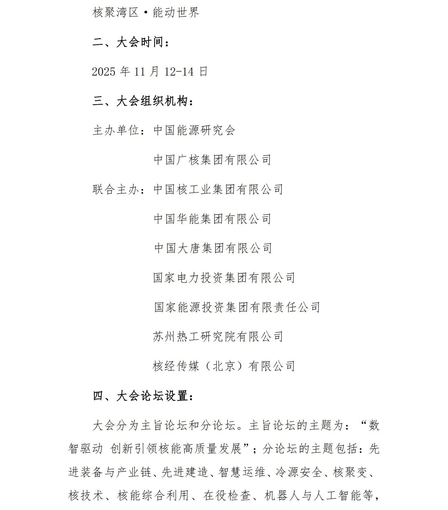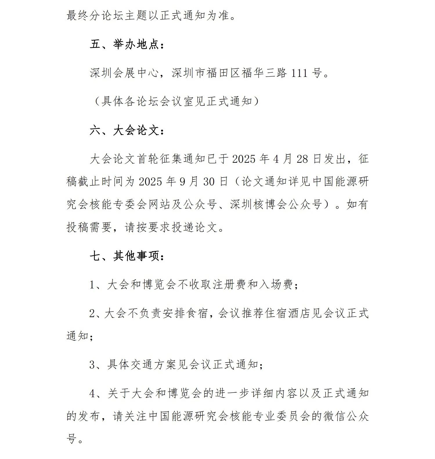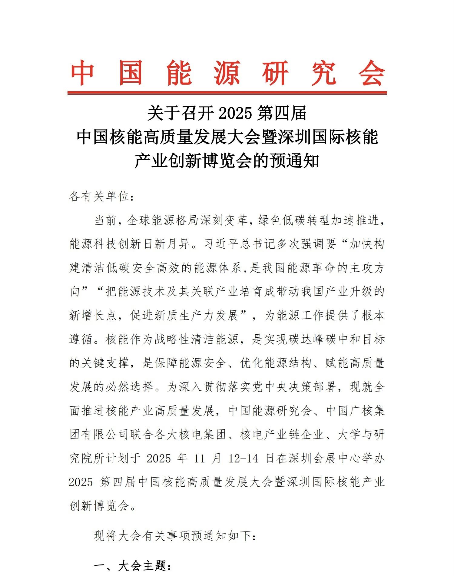 關于召開2025第四屆中國核能高質量發展大會暨深圳國際核能產業創新博覽會的預通知