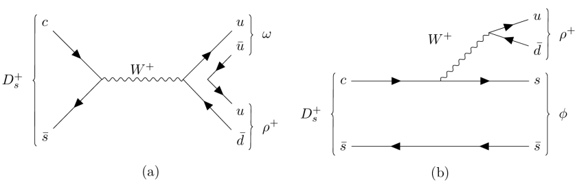 圖1 純W-湮滅過程Ds+→ωρ+ (a) 和純W-外發射過程Ds+→Φρ+ (b) 的拓撲圖
