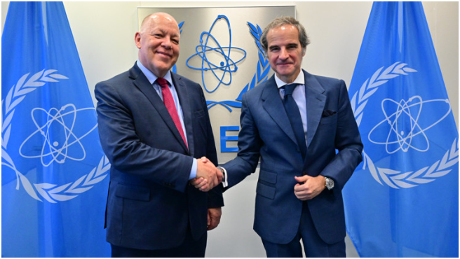 國際原子能機構總干事拉斐爾·馬里亞諾·格羅西于6月16日星期一與MedAcess首席執行官邁克爾·安德森簽署了合作協議。(圖片:國際原子能機構)
