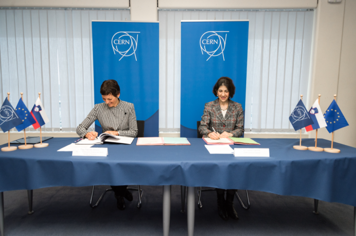 CERN 與斯洛文尼亞有著長期的合作關系:2016 年,斯洛文尼亞教育、科學和體育部長 Maja Makovec Bren?i? 博士與 CERN 總干事 Fabiola Gianotti 簽署了協議,接納斯洛文尼亞共和國為 CERN 準會員,作為 CERN 會員資格的預備階段(圖片??:CERN)