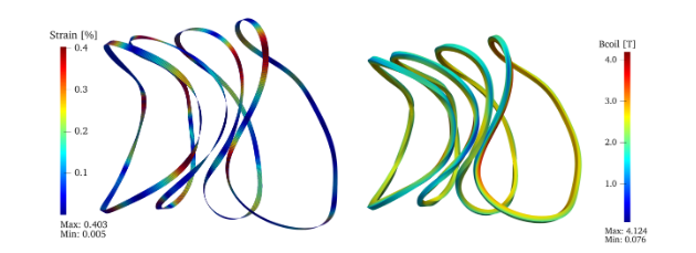 眾多磁約束聚變路徑中,仿星器(stellarator)利用獨特三維磁場約束等離子體,具有穩態運行、免疫破裂等優勢,其聚變功率與磁場的四次方成正比。高溫超導(High Temperature Superconductor, HTS)材料具有極高的載流能力,因此在提高核聚變功率和減小裝置尺寸方面具有顯著優勢。然而,最常見的規模化應用高溫超導材料稀土鋇銅氧ReBCO具有獨特的電磁和機械性能,對仿星器三維線圈的設計提出了新的挑戰。