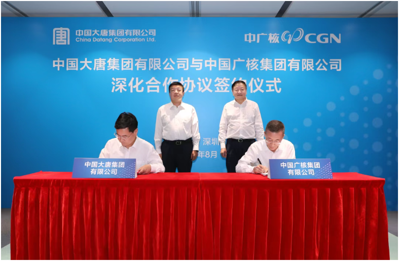 8月6日,中國(guó)大唐集團(tuán)有限公司與中國(guó)廣核集團(tuán)有限公司在深圳簽署深化合作協(xié)議。簽約前,中國(guó)大唐黨組書記、董事長(zhǎng)呂軍與中廣核黨委書記、董事長(zhǎng)楊長(zhǎng)利圍繞核能、新能源、國(guó)際業(yè)務(wù)合作等進(jìn)行深入座談交流。