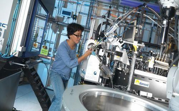 英國的鉆石光源(UK’s Diamond Light Source)的生命科學束線(life sciences beamlines)開放供病毒研究使用。下圖為科學家在英國的鉆石光源前檢查新型冠狀病毒蛋白晶體樣品,該蛋白對在人宿主細胞內復制至關重要。