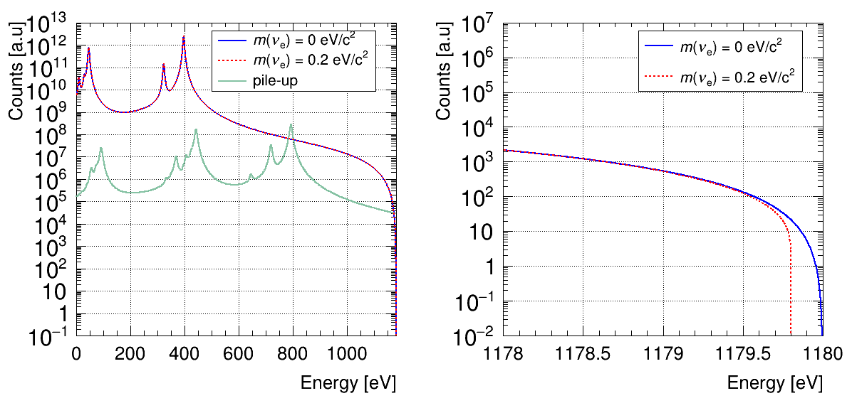 圖1:不同中微子質量下的鏑-159軌道電子俘獲能譜