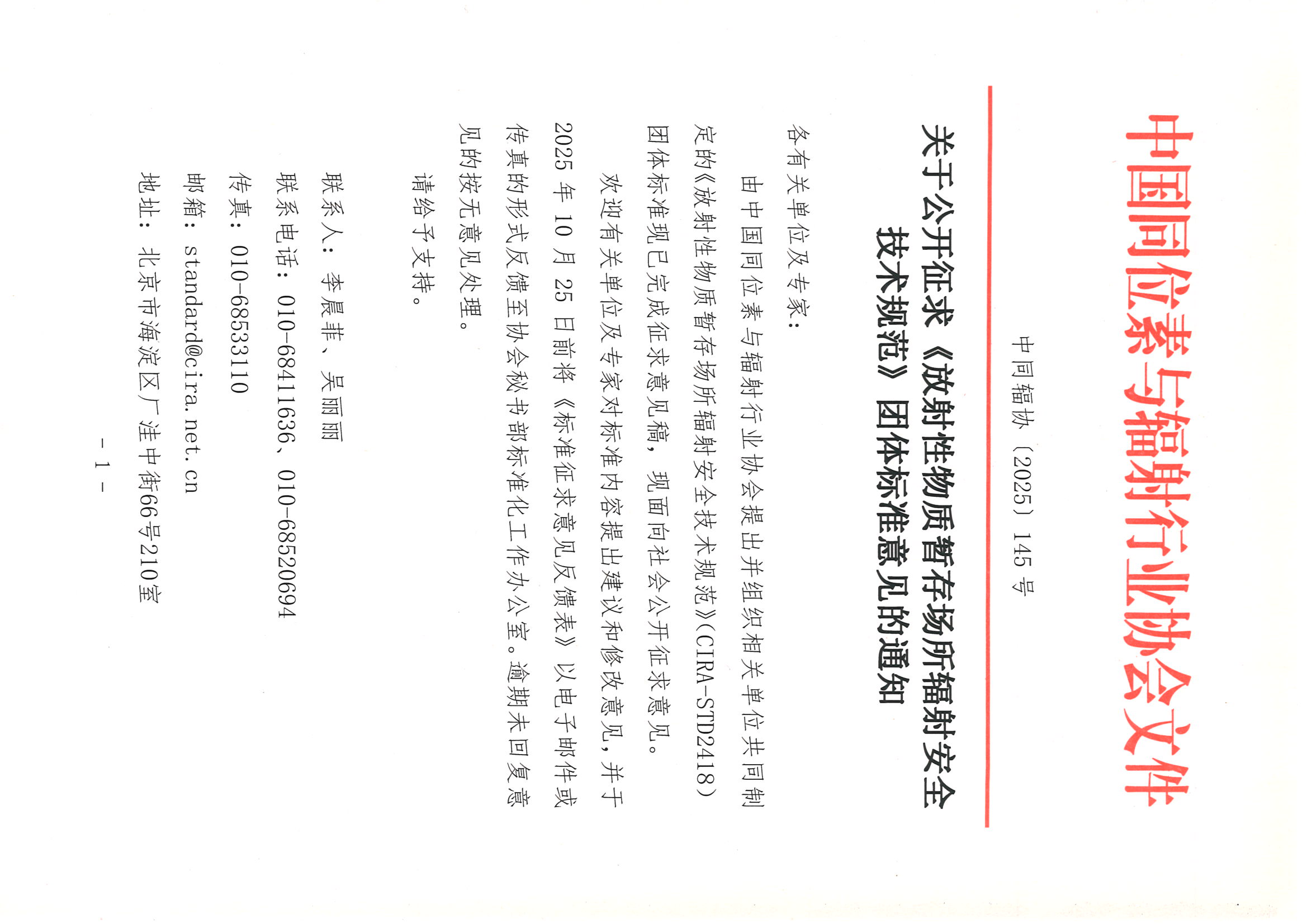9月26日,中國同位素與輻射行業協會發布關于公開征求《放射性物質暫存場所輻射安全技術規范》團體標準意見的通知。該通知面向各有關單位及專家稱,由協會提出并組織相關單位共同制定的《放射性物質暫存場所輻射安全技術規范》(CIRA - STD2418)團體標準已完成征求意見稿,現面向社會公開征求意見。