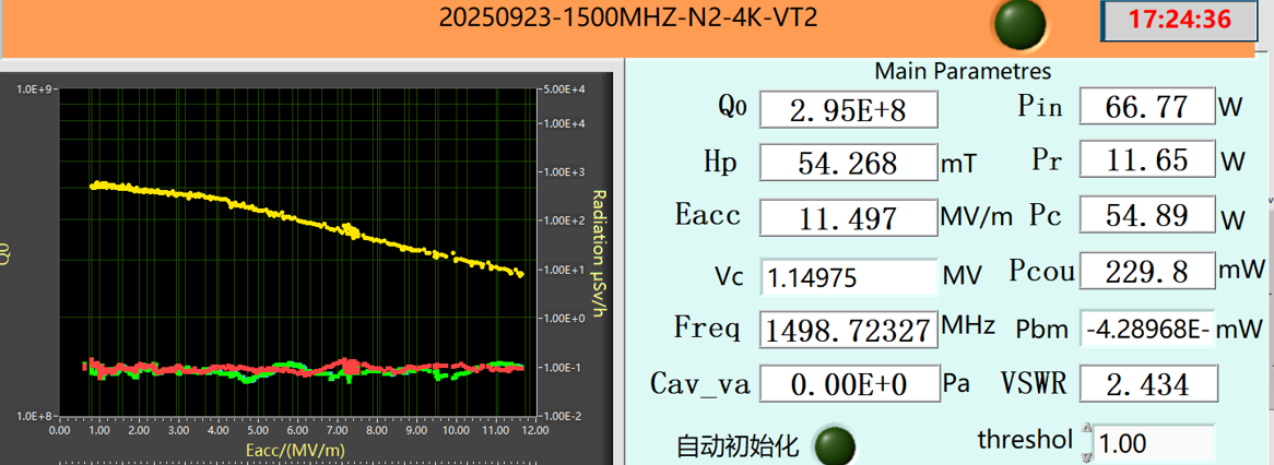 2025 年 9 月 23 日,中國科學院高能物理研究所在北京懷柔先進光源技術研發與測試平臺(PAPS)組織召開了合肥先進光源(HALF)高次諧波腔測試評審會。測試專家組由來自北京大學、中國科學院上海高等研究院、中國科學院近代物理研究所、中國原子能科學研究院和中國科學技術大學的 9 位專家組成。測試專家組聽取了項目組對高次諧波腔測試方案和自測試結果的報告,檢查了測試裝置。經過專家組測試,超導腔最大加速梯度達到11.5 MV/m,在HALF超導腔設計最大梯度6 MV/m時品質因數為4.0×108,兩項關鍵技術指標均超過HALF項目設計指標要求,達到國際先進水平。