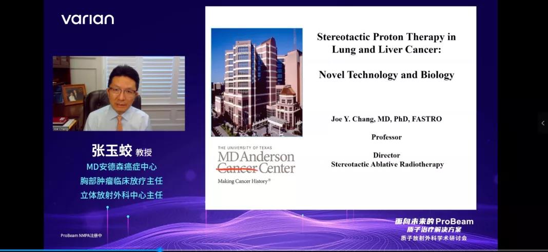 MD安德森癌癥中心胸部腫瘤臨床放療主任、立體放射外科中心主任張玉蛟教授做了題為《肺癌和肝癌的質子體部放射外科治療:新的技術和生物學分析》的演講。