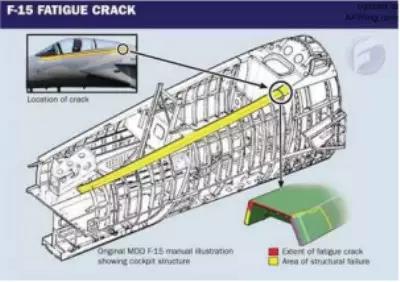 2007年,美國空軍的一架F-15戰斗機在模擬空戰時就出現了如此驚險的一幕。這次事故造成美軍F-15戰機大面積停飛,而調查結果顯示,事故起因于飛機上的一根金屬縱梁發生了疲勞。