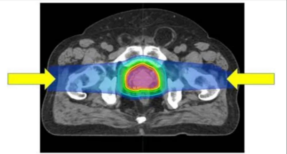 通過從左右兩個方向照射,質(zhì)子治療可獲得集中在前列腺癌的良好劑量分布