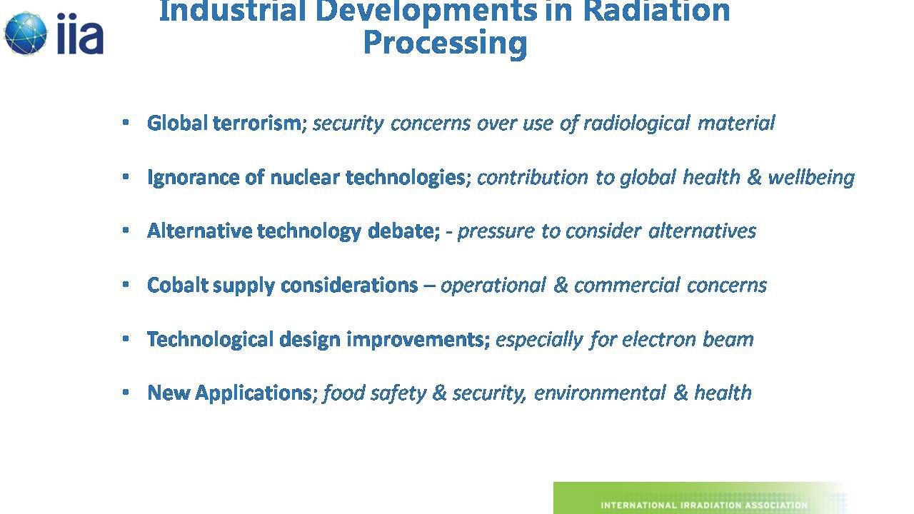 由中國核能行業協會主辦的首屆中國國際核技術應用產業大會于2018年10月17-19日在廣東東莞召開。國際輻照協會秘書長Paul Wynne先生出席會議并做主旨報告。
