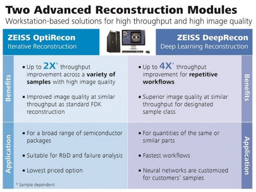 蔡司制程控制解決方案部門總裁Stefan Preuss博士說:“自去年上市以來,蔡司的Xradia 600系列Versa憑借其在封裝失效分析中出色的分辨率、圖像質量以及產出,在電子及半導體封裝產業中發展勢頭強勁。由于我們的客戶在先進封裝的失效分析中不斷面臨全新的挑戰,因此蔡司在通過持續創新,使我們的產品擁有全新的功能和更強大的性能,以迎接那些迎面而來的挑戰。我們開發的高級重構工具箱便是一個很好的例子。該工具箱包含OptiRecon和DeepRecon兩個模塊,能顯著提高世界一流成像解決方案的產出和圖像質量,使我們的客戶比以往任何時候都能快速排除故障,實現更高的封裝產量。”