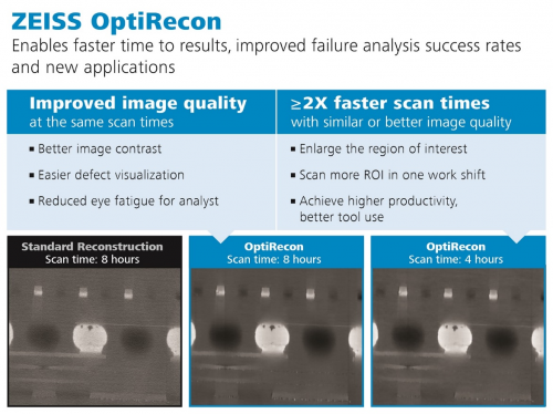 OptiRecon是各種半導體封裝的理想選擇,適用于研發和失效分析。它使用了迭代重構技術。這項技術通過多層迭代來計算真實投影和模擬投影之間的差異,直至實現收斂。與FDK技術相比,OptiRecon大幅度減少了投影次數和縮短了成像時間,無疑是最佳的掃描策略。在保持或提高圖像質量的前提下,它可使半導體封裝的掃描時間最多縮短兩倍。在提高生產效率后可實現多方面效益:擴大感興趣區域、在一個班次內便可完成分析工作、減少樣品的輻射劑量。在與FDK的通量相當的情況下,OptiRecon可提高圖像質量,從而實現更優的襯度噪音比,而且能提高缺陷可視化并緩解分析師的眼部疲勞。OptiRecon采用簡單易用并能優化重構參數的界面,以及高級高性能離線工作站,以實現高速、高效的重構。