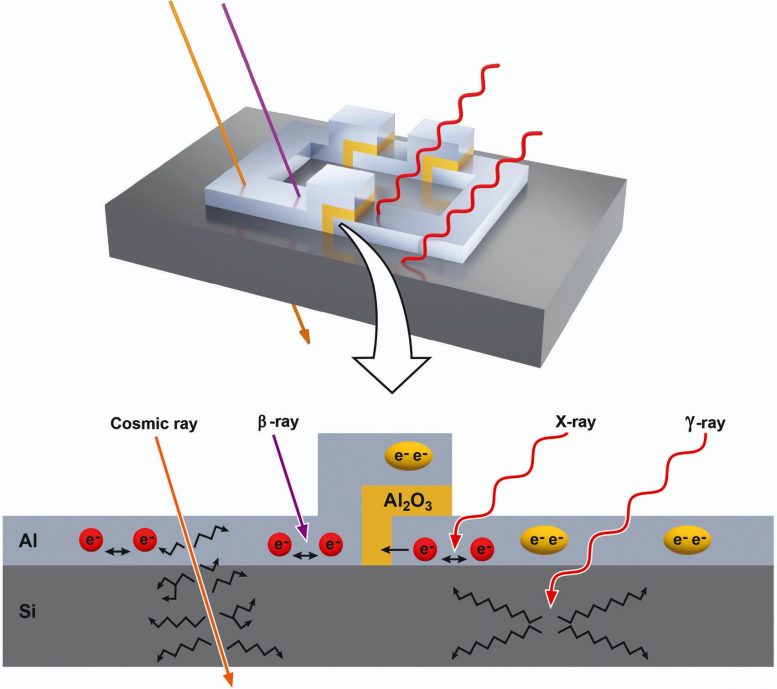 X射線,β射線,宇宙射線和γ射線形式的自然輻射會穿透超導(dǎo)量子位并干擾量子相干性。圖片來源:PNNL的Michael Perkins
