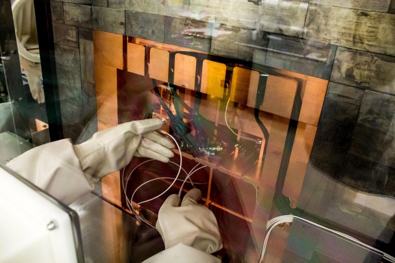 自然輻射可能會干擾超導(dǎo)暗物質(zhì)探測器(在此可見)和超導(dǎo)量子位。圖片來源:蒂莫西·霍蘭(PNL)