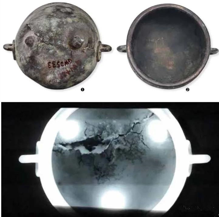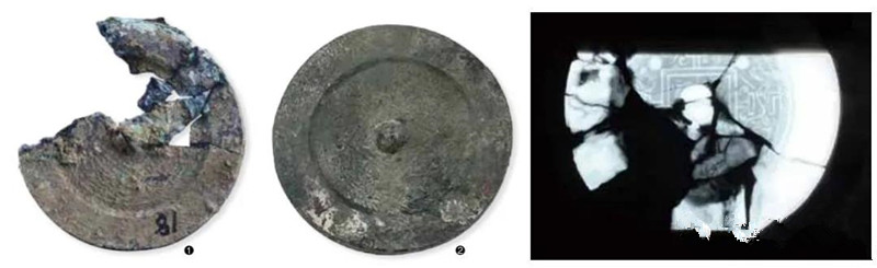 X射線探傷應用于青銅器分析時可以在無損傷條件下成功探測出青銅器的內部結構、腐蝕情況、加固修復痕跡,獲取芯撐、范縫、補鑄等重要信息,以及直接拍攝出銅鏡被覆蓋的銘文、紋飾,探查青銅器制作工藝。