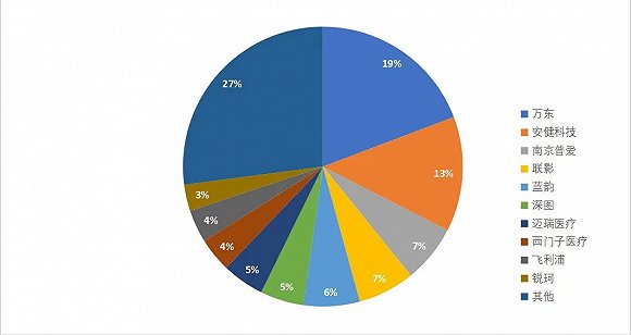 醫學影像設備細分領域,馬太效應明顯,頭部企業較集中,余下中小企業集中度較低。
