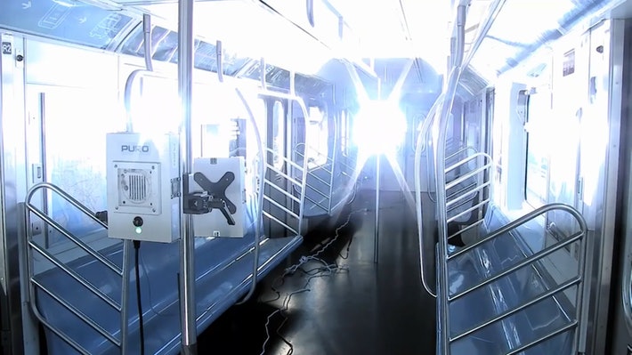 紐約市公交局(MTA)正在測試使用紫外線對停運的地鐵車輛進行消毒。MTA