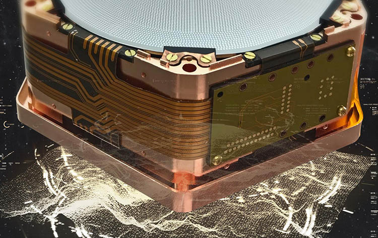 超導電路用在暗物質探測器中,如圖所示,在量子計算機中用作量子位。圖片來源:蒂莫西·荷蘭(Timothy Holland)/ PNNL