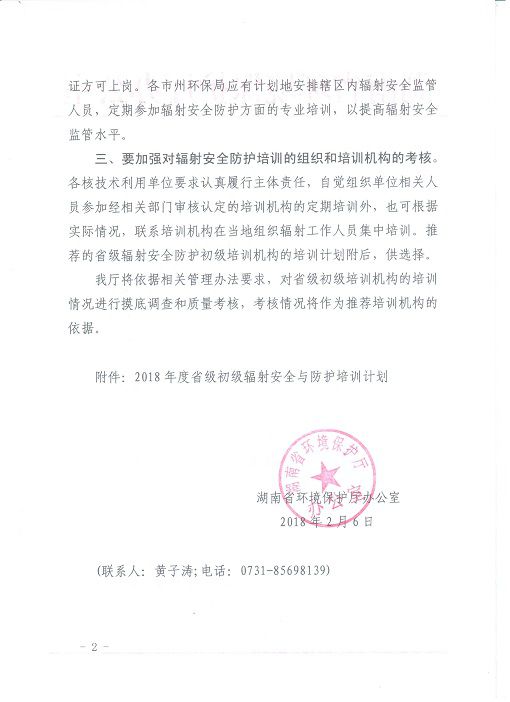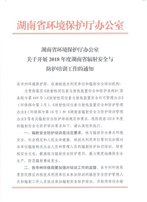 關于開展2018年度湖南省輻射安全與防護培訓工作的通知